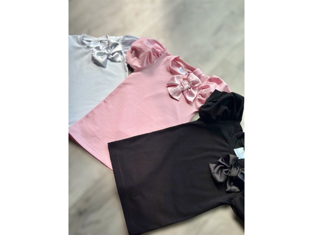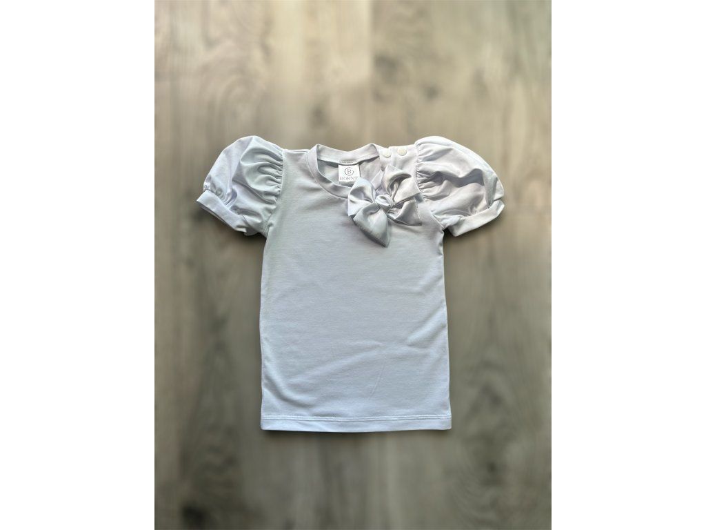 oztomilé dievčenské tričko v bielej farbe je ideálnou voľbou na každodenné nosenie aj špeciálne príležitosti. Elegantná saténová mašľa na prednej strane dodáva tričku nežný a štýlový vzhľad.